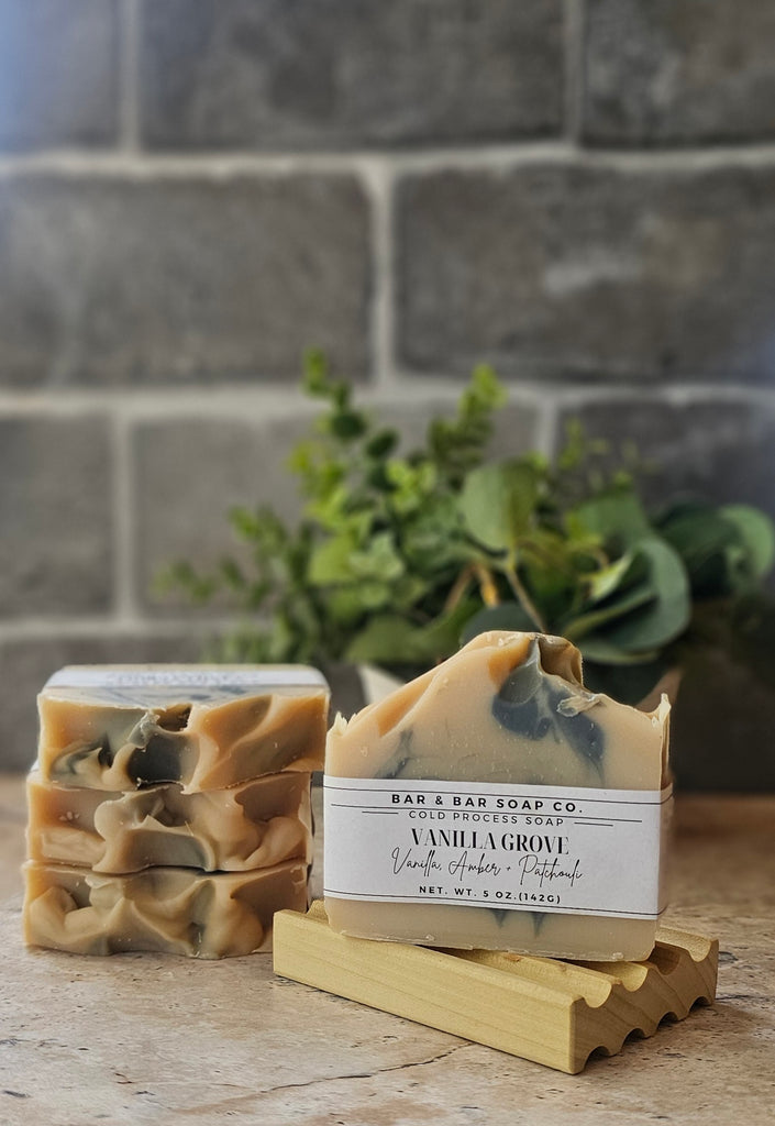 Vanilla Grove has rich woody notes of sandalwood, amber, and patchouli that are sweetened by vanilla bean.